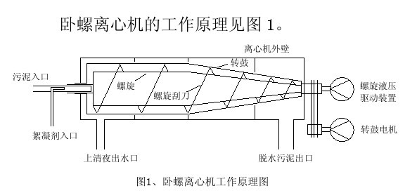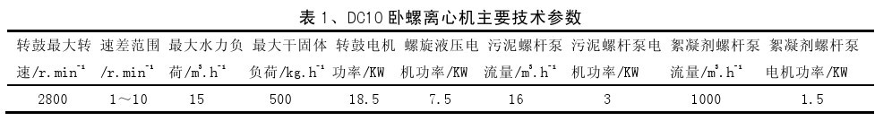 臥螺離心脫水機具有分離效果良好、工作效率高、使用管理維護簡單方便的特點,并且臥螺離心脫水機采用全封閉的結(jié)構(gòu),避免了帶式壓慮機存在的種種弊端(如現(xiàn)場環(huán)境惡劣、臭味大、大量使用絮凝劑和清洗水、設備體積大、日常使用維護麻煩),目前在污水處理、食品、醫(yī)藥、化工等領域的固液分離中得到廣泛的應用,本研究根據(jù)生產(chǎn)實踐,探索了速差、工作壓力等控制條件對污泥脫水效果影響的變化規(guī)律,總結(jié)了使離心機的穩(wěn)定運行的調(diào)整方法。
