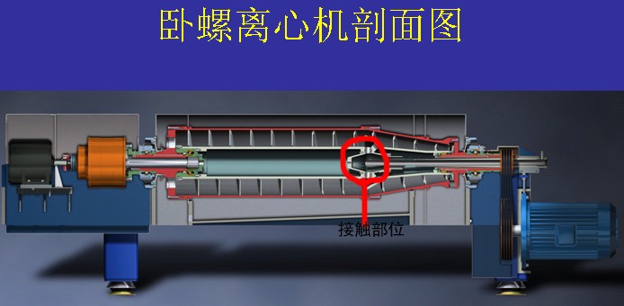 綜述:以上第4點(diǎn)是解決離心機(jī)運(yùn)行時(shí)的靜態(tài)耐磨措施,由于泥漿等硬質(zhì)廢水剛進(jìn)離心機(jī)有一定的沖擊磨損及動(dòng)態(tài)磨損,從離心機(jī)剖面圖上可以看到,廢水是經(jīng)進(jìn)料管直接通到離心機(jī)紅圈部位(如圖1),此部位我們設(shè)計(jì)了凹槽結(jié)構(gòu),就是為了減少泥漿對初接面的沖擊力,經(jīng)此回流的低速廢水就可以安全處理了。在初接面的區(qū)域設(shè)計(jì)實(shí)心(如圖2),即便有沖擊磨損,實(shí)心區(qū)的材質(zhì)也足夠5年以上的磨損,離心機(jī)也得到最大限度的保護(hù)。