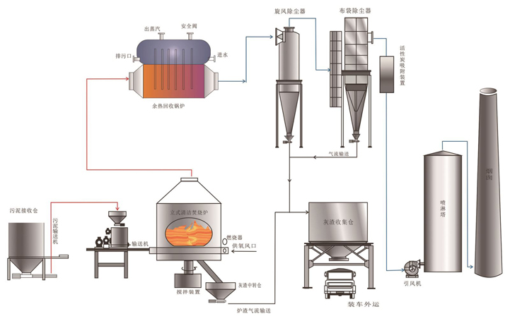 (5)立爐內(nèi)長(zhǎng)達(dá)近1小時(shí)的停留時(shí)間和 800℃以上的高溫,使污泥完全燃盡;立式清潔焚燒爐腔體容積大,具有二燃室的作用,氣體混合使得煙氣中未完全燃燒物完全燃燒達(dá)到有害成分分解所需的高溫 ,高溫區(qū)煙氣總停留時(shí)間為≥2 秒,使有害成分廢渣焚盡燒透。